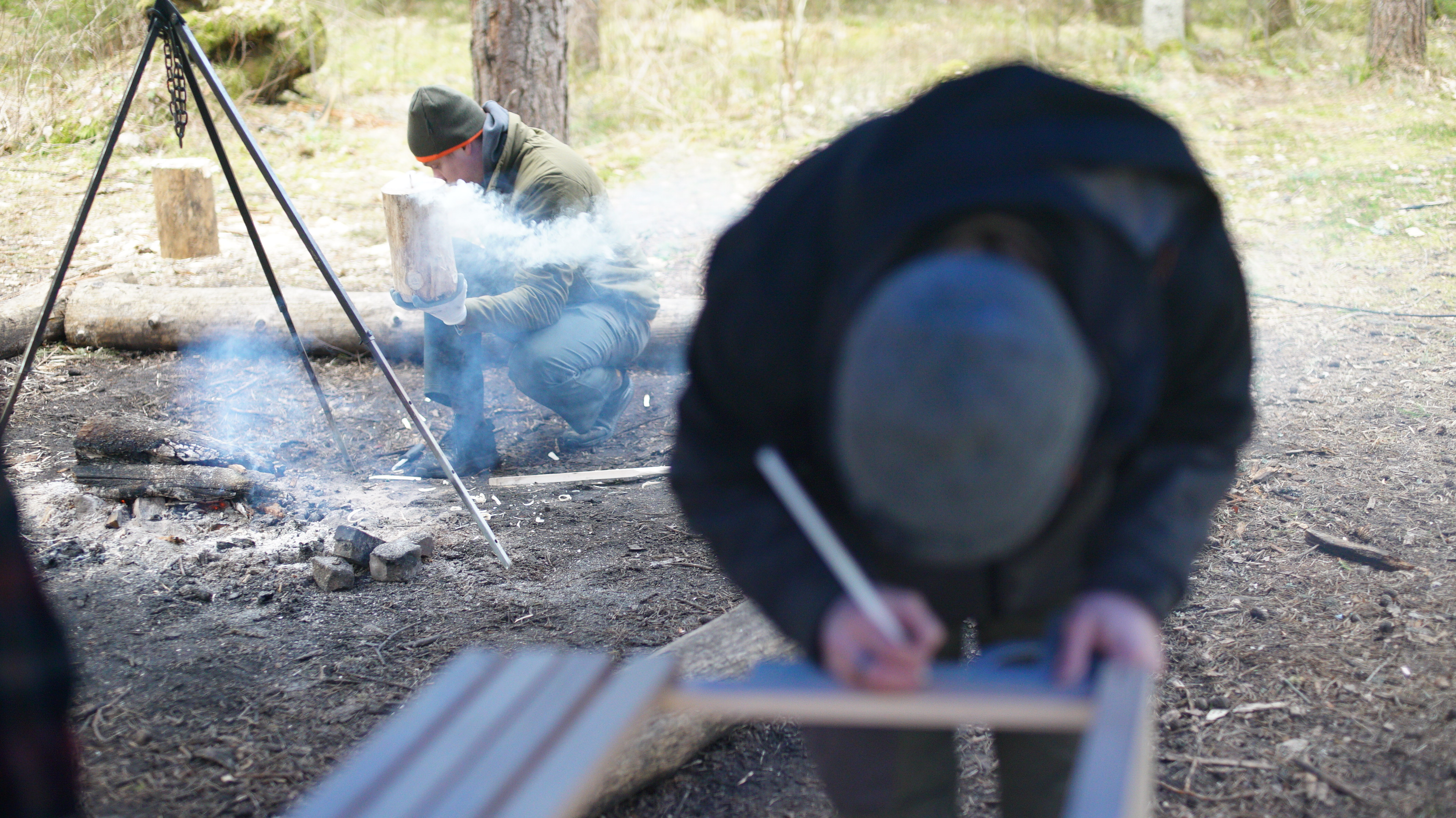 2) Praktizējam dzīvošanu brīvā dabā, kas ietver nometnes izveidi, ēst gatavošanu uz ugunskura un nakšņošanu brīvā dabā,